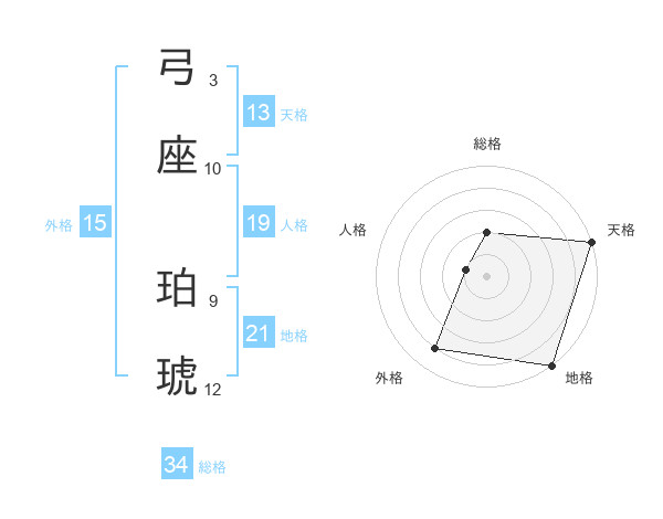 弓座 珀琥さんを姓名の画数から五運を鑑定