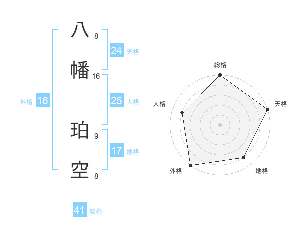八幡 珀空さんの天格は24画の5点!