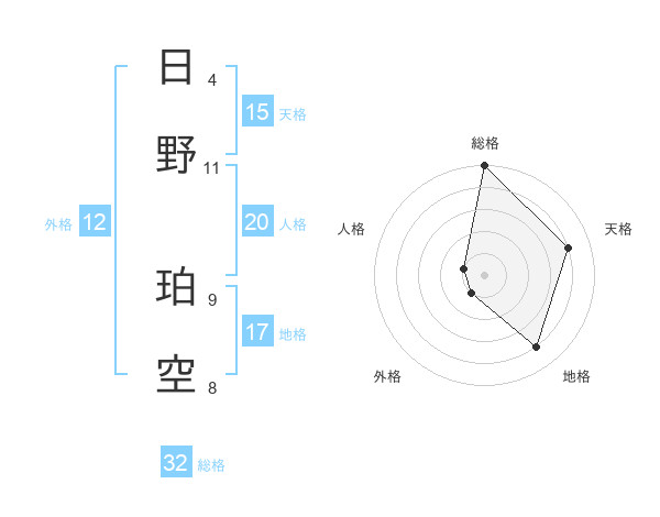 日野 珀空さんの総格は32画の5点!