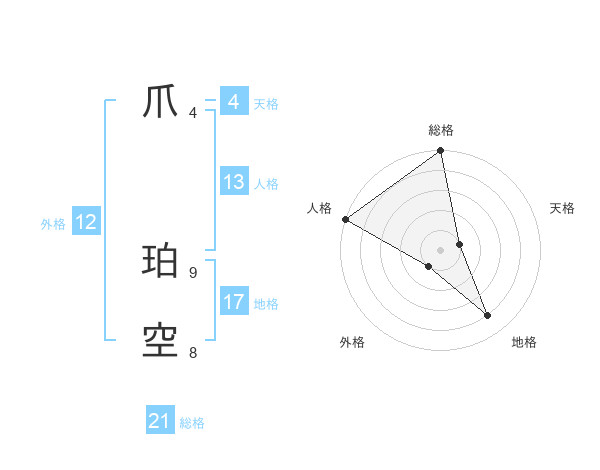 爪 珀空さんの総格は21画の5点!