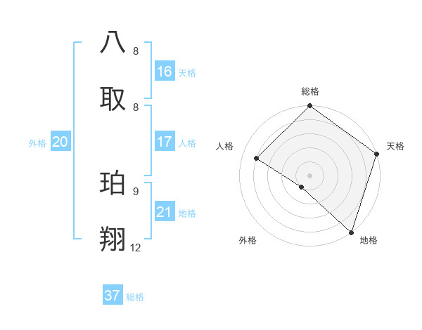 八取 珀翔さんの総格は37画の5点!