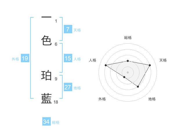 一色 珀藍さんの総格は34画の2点!