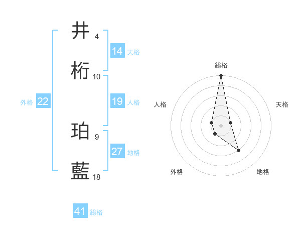 井桁 珀藍さんの総格は41画の5点!
