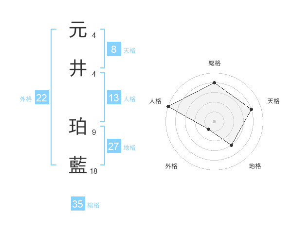 元井 珀藍さんの天格は8画の4点!