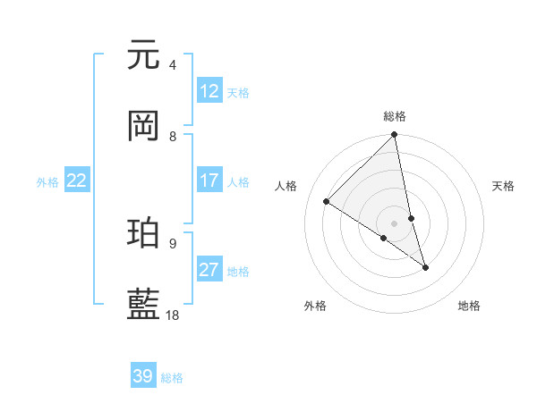 元岡 珀藍さんを姓名の画数から五運を鑑定