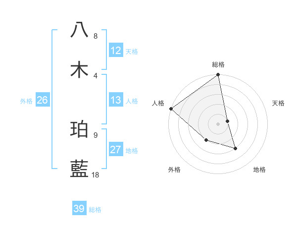 八木 珀藍さんの総格は39画の5点!
