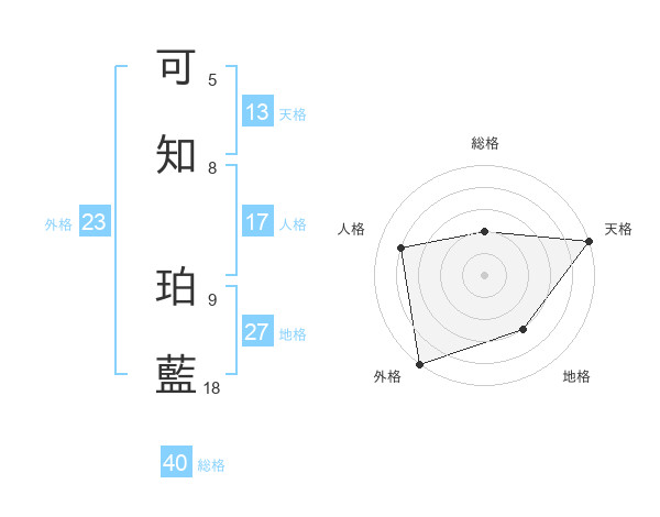 可知 珀藍さんの天格は13画の5点!