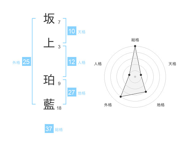 坂上 珀藍さんの総格は37画の5点!