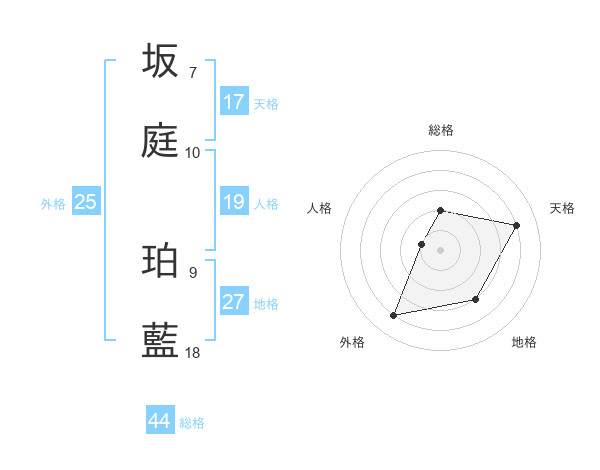 坂庭 珀藍さんの天格は17画の4点!