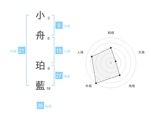 小舟 珀藍さんの総格は36画の3点!