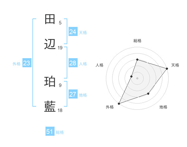田辺 珀藍さんを姓名の画数から五運を鑑定