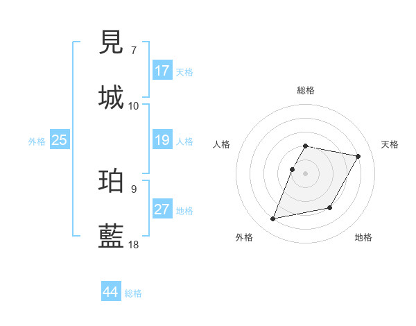 見城 珀藍さんの天格は17画の4点!