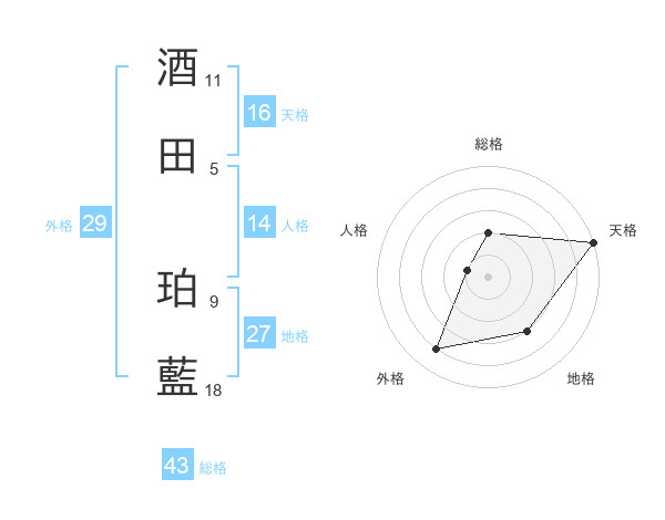酒田 珀藍さんの天格は16画の5点!