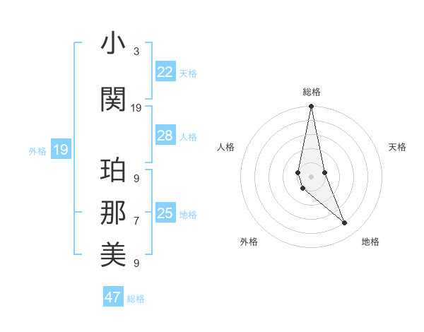 小関 珀那美さんを姓名の画数から五運を鑑定