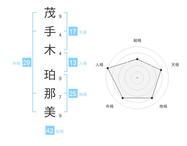 茂手木 珀那美さんの天格は17画の4点!