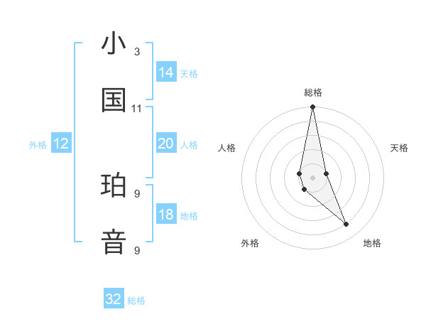 小国 珀音さんの総格は32画の5点!
