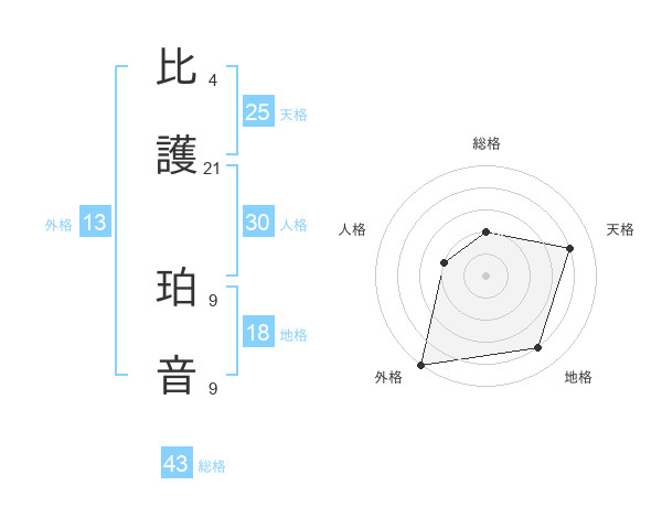 比護 珀音さんの天格は25画の4点!