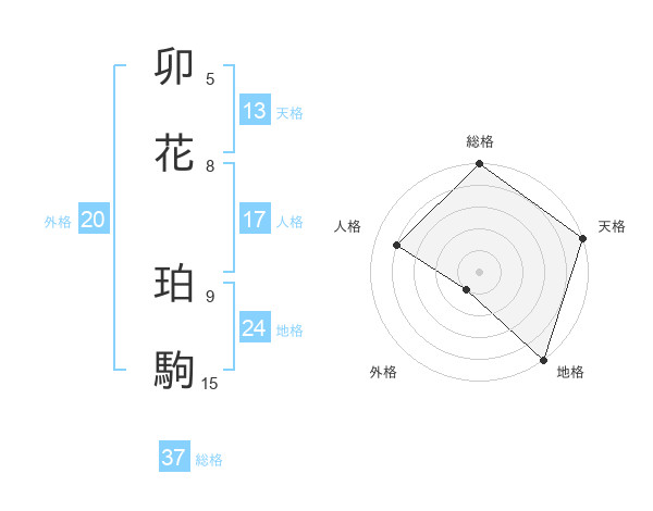 卯花 珀駒さんの総格は37画の5点!