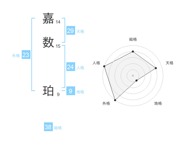嘉数 珀さんの外格は23画の5点!