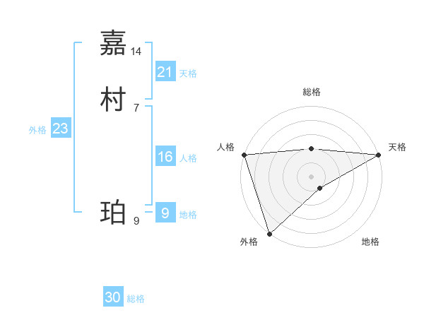 嘉村 珀さんの天格は21画の5点!