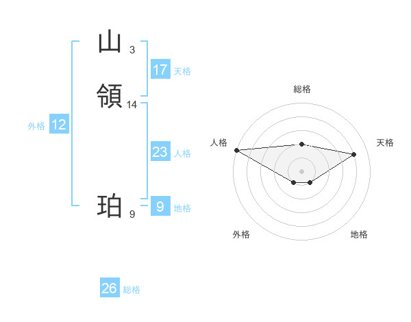 山領 珀さんの人格は23画の5点!