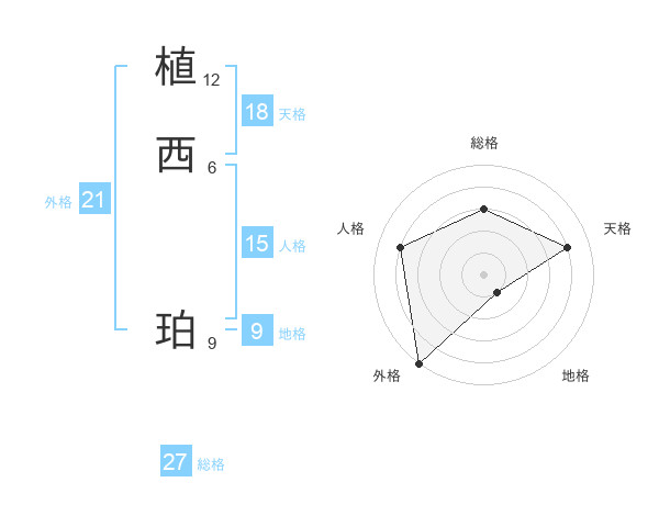 植西 珀さんの総格は27画の3点!