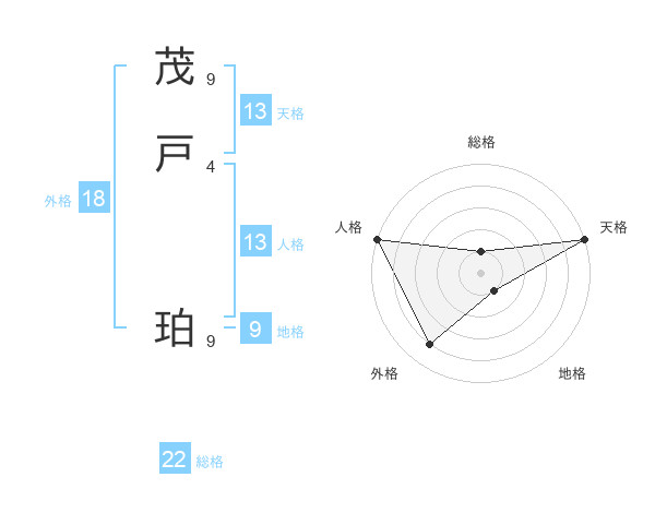 茂戸 珀さんの天格は13画の5点!