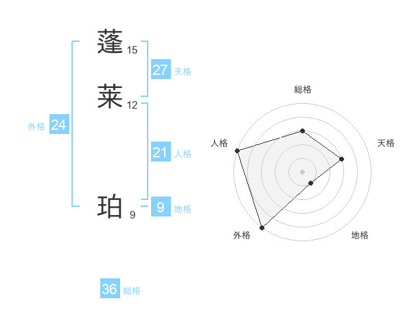 蓬莱 珀さんを姓名の画数から五運を鑑定