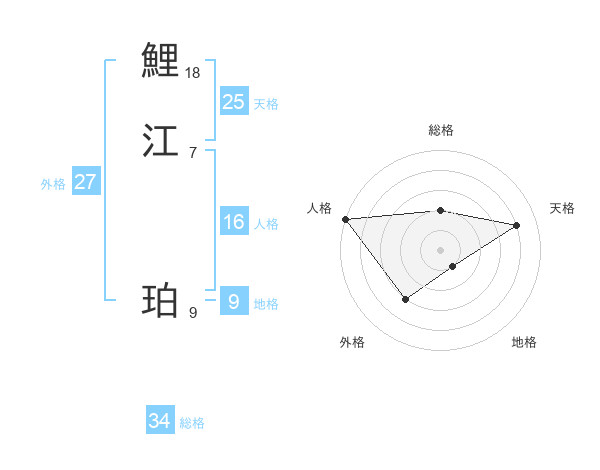 鯉江 珀さんを姓名の画数から五運を鑑定