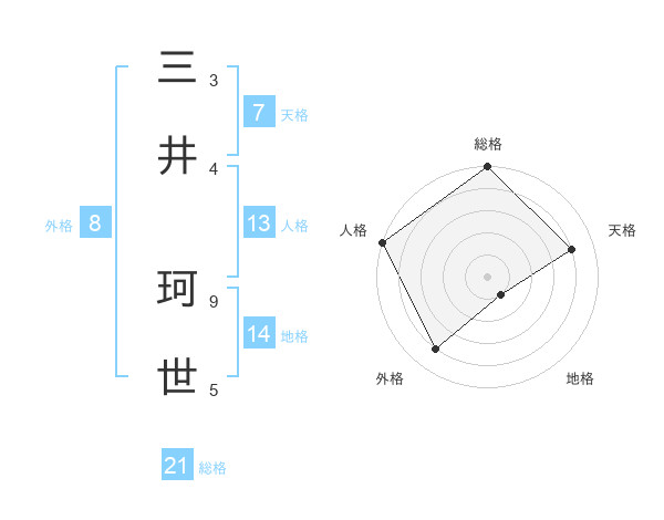三井 珂世さんの総格は21画の5点!