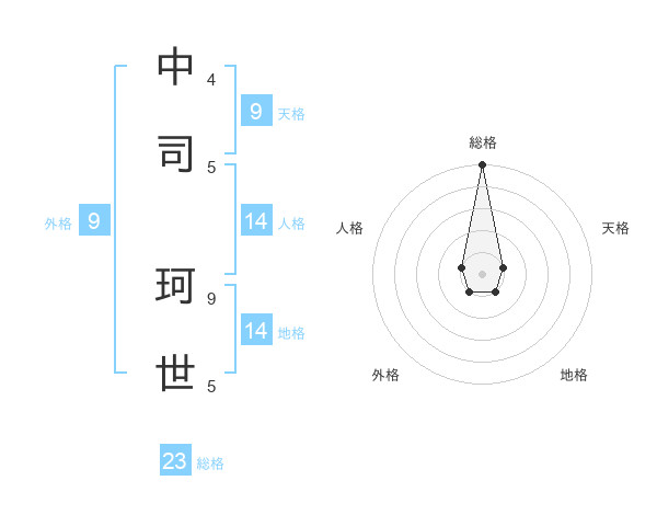 中司 珂世さんの総格は23画の5点!