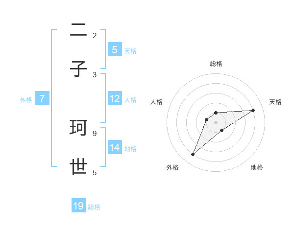 二子 珂世さんの天格は5画の4点!