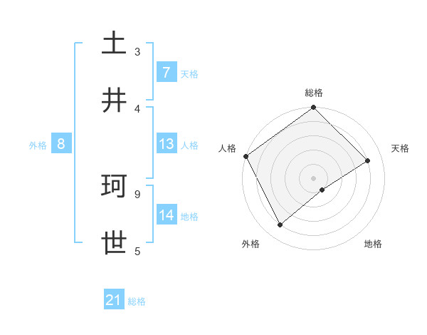 土井 珂世さんの総格は21画の5点!