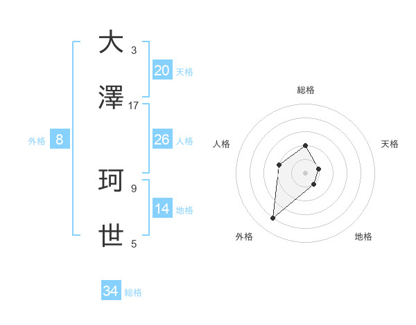大澤 珂世さんを姓名の画数から五運を鑑定