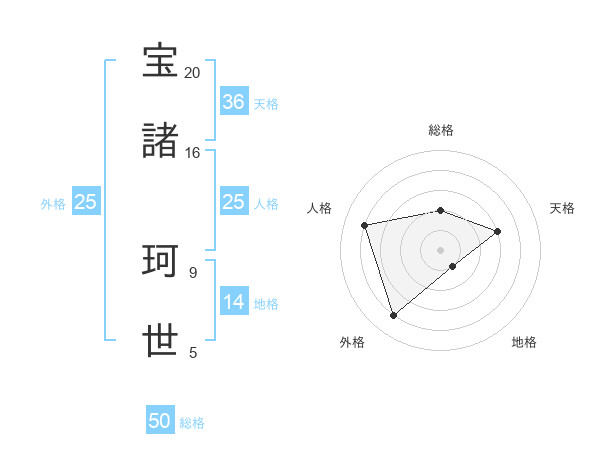 宝諸 珂世さんを姓名の画数から五運を鑑定