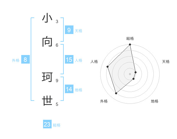 小向 珂世さんの総格は23画の5点!