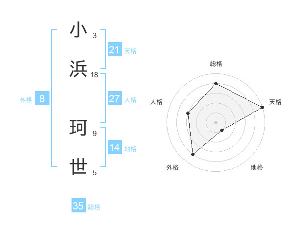 小浜 珂世さんを姓名の画数から五運を鑑定