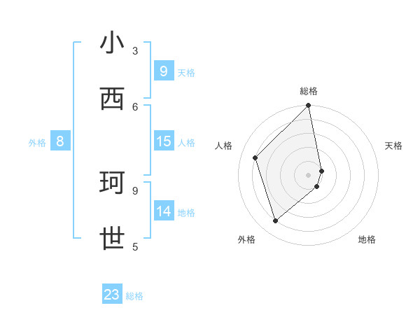 小西 珂世さんの総格は23画の5点!