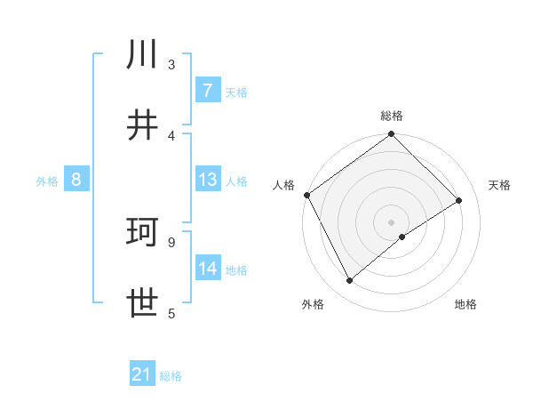 川井 珂世さんの総格は21画の5点!