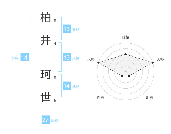 柏井 珂世さんを姓名の画数から五運を鑑定