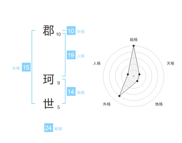 郡 珂世さんの総格は24画の5点!