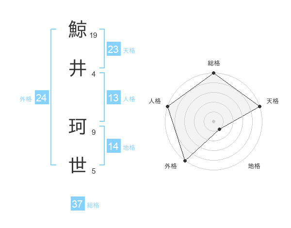 鯨井 珂世さんを姓名の画数から五運を鑑定