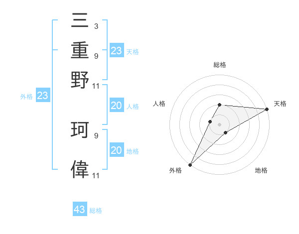 三重野 珂偉さんを姓名の画数から五運を鑑定