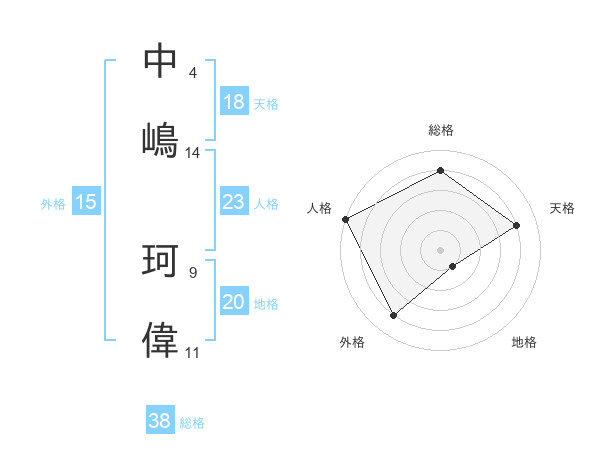 中嶋 珂偉さんの天格は18画の4点!