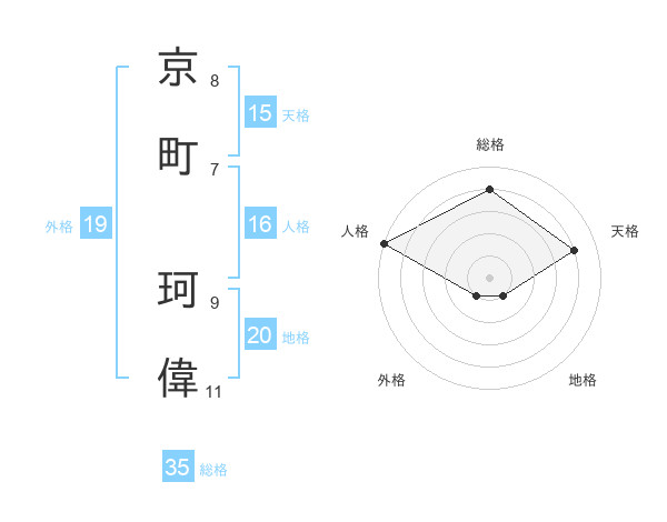 京町 珂偉さんを姓名の画数から五運を鑑定