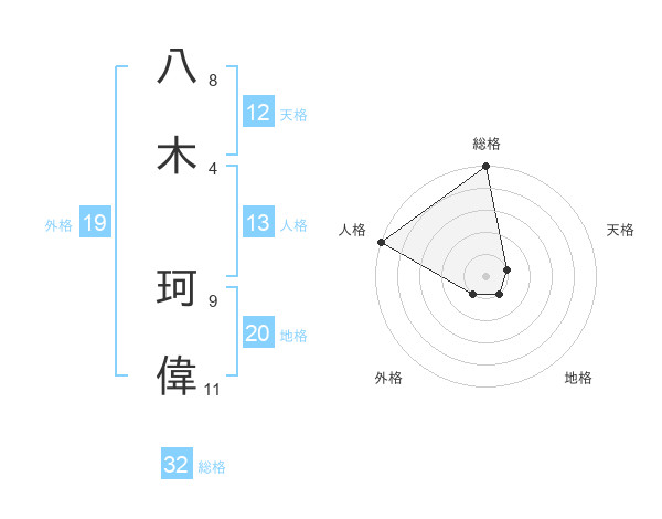 八木 珂偉さんを姓名の画数から五運を鑑定