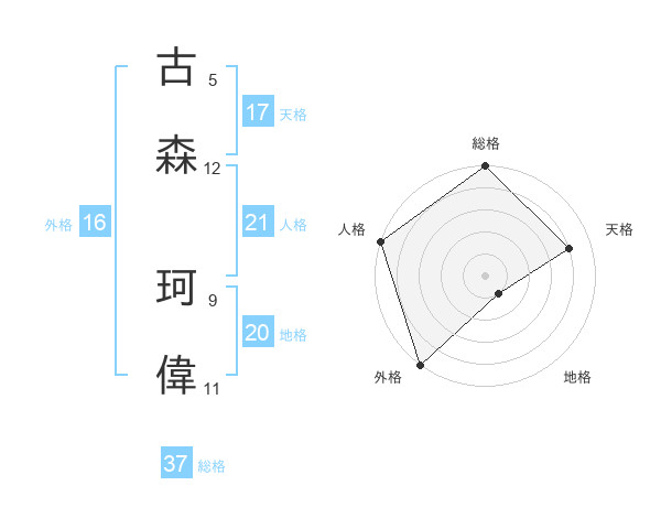 古森 珂偉さんを姓名の画数から五運を鑑定