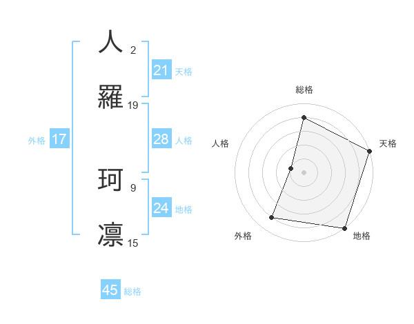 人羅 珂凛さんの天格は21画の5点!