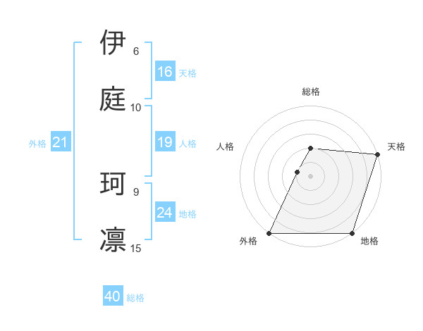 伊庭 珂凛さんを姓名の画数から五運を鑑定