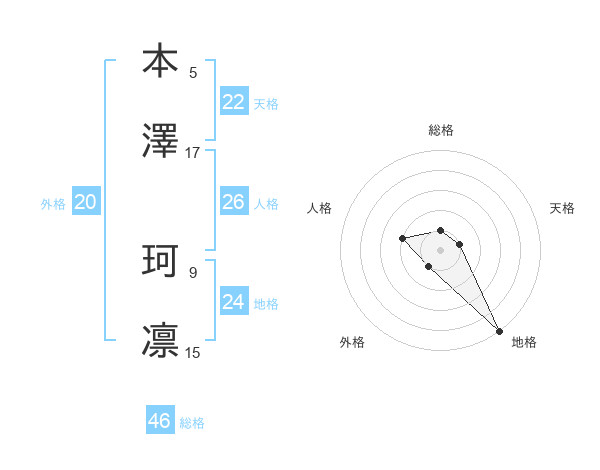 本澤 珂凛さんの地格は24画の5点!